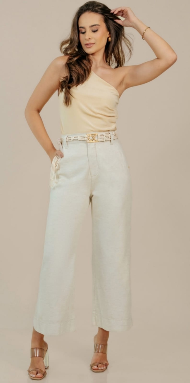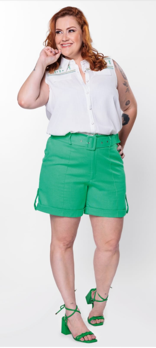 • Bermuda Feminina Meia Coxa Plus Size em Linho Alfaiataria