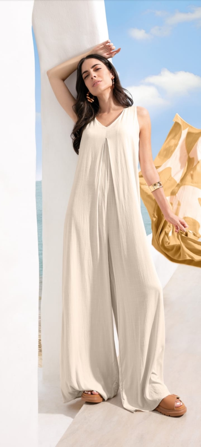 • Macacão Feminino Cavado Alfaiataria em linho