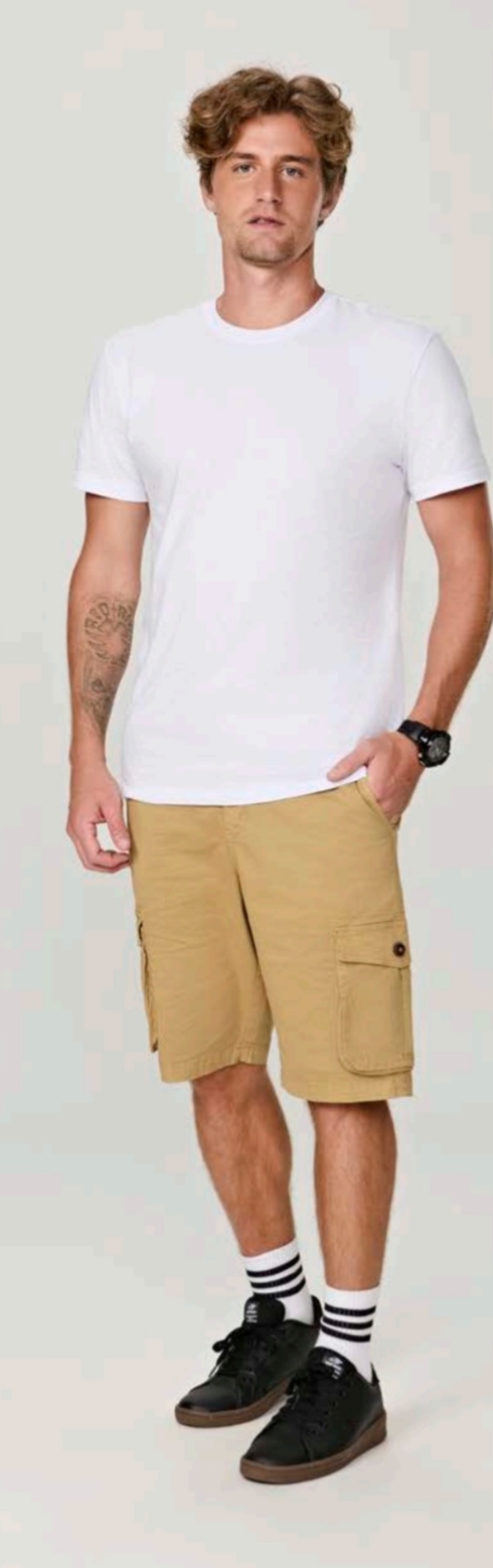 Bermuda cargo é a escolha perfeita para quem busca praticidade, estilo e conforto. Confeccionada em sarja com toque macio, seu design cargo, com bolsos laterais, adiciona um visual moderno e utilitário.