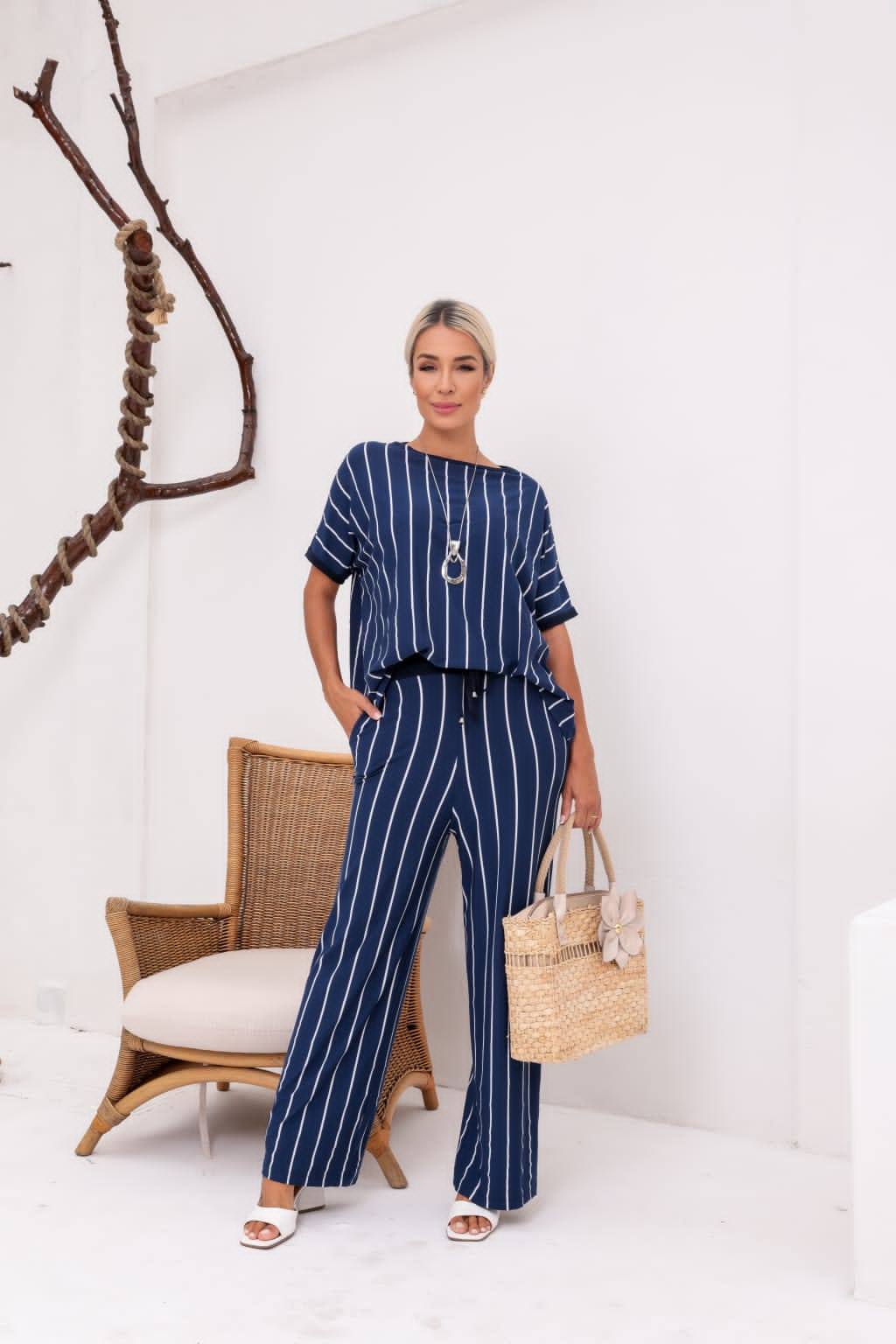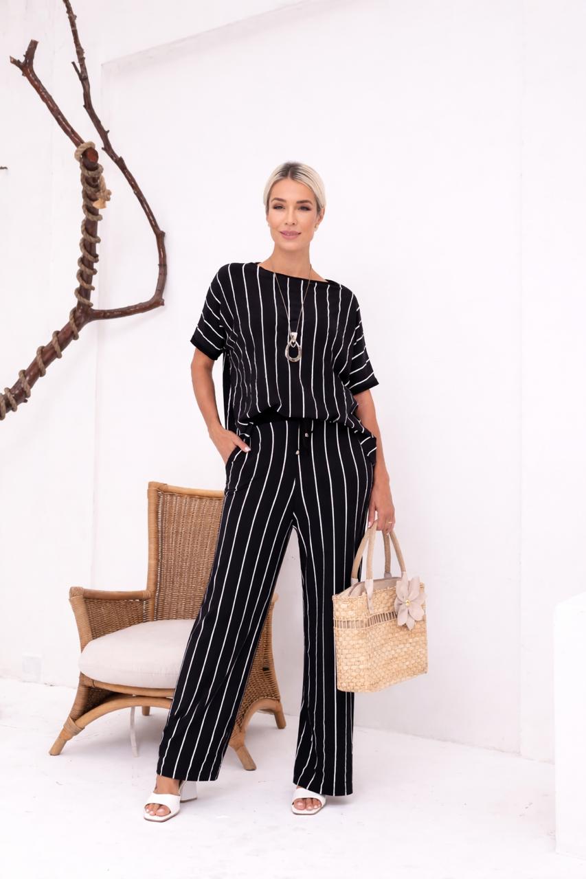 Conjunto confeccionado em fio vórtex, fluido com caimento impecável. Blusa fluida com calça reta, elegante e sofisticado!